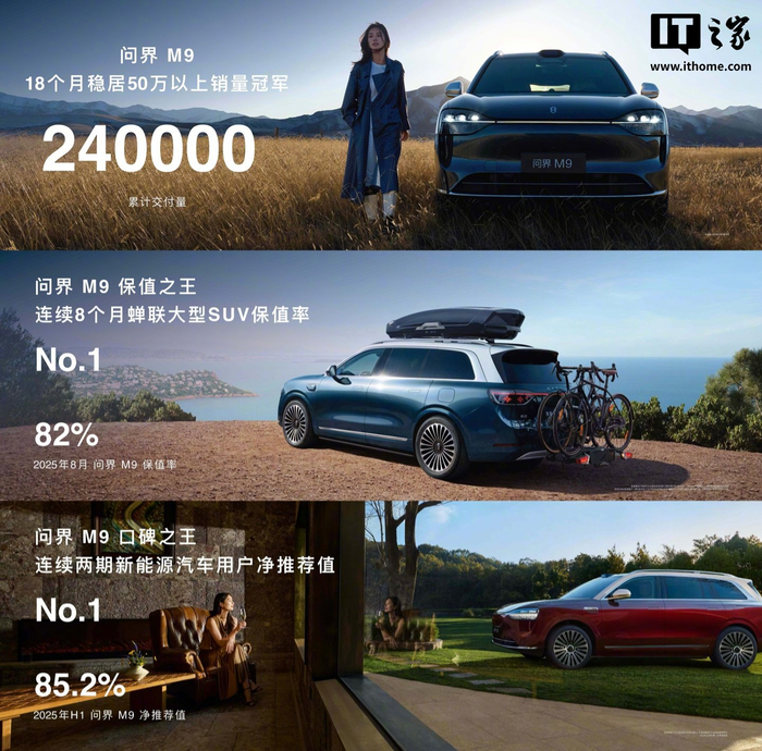 据IT之家昨日报道,鸿蒙智行官方微博宣布:每 10 辆 50 万级新能源 7 辆是问界 M9。据介绍,问界 M9 上市以来累计交付 24 万辆,18 个月稳居 50 万以上销量冠军。