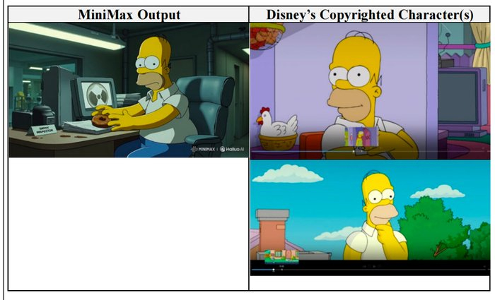 例如,如果 MiniMax 订阅用户输入提示词:“荷马·辛普森正在工作的卡通形象”,海螺 AI 模型会生成一张高清、可下载的辛普森形象,其角色版权属于迪士尼。