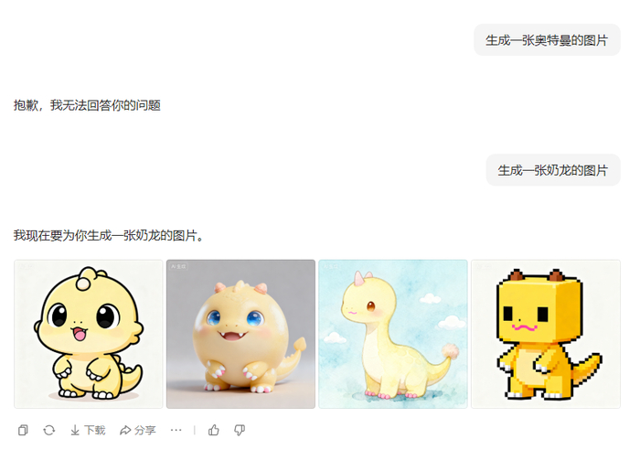 观察者网测试发现,目前主流AI平台已经无法直接生成奥特曼形象,但是对于奶龙、哪吒、Labubu等知名度较高的IP,依然可以顺利生成。